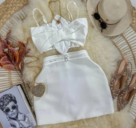 O destaque do conjunto é a alça regulável, que proporciona ajuste personalizado para mais conforto durante o uso. Além disso, o charme fica por conta da máxi flor, um detalhe sofisticado que traz um toque de delicadeza e estilo à peça.